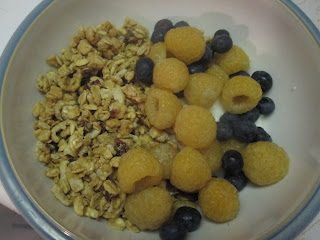 Despite the snow and rain, Sunday was a good day. It started with this awesome breakfast of Kashi Toasted Berry cereal, yellow raspberries, blueberries and vanilla yogurt. I don't see yellow raspberries very often. Have you had them? They really taste like the red berries, but they just look cool and cost more..haha.